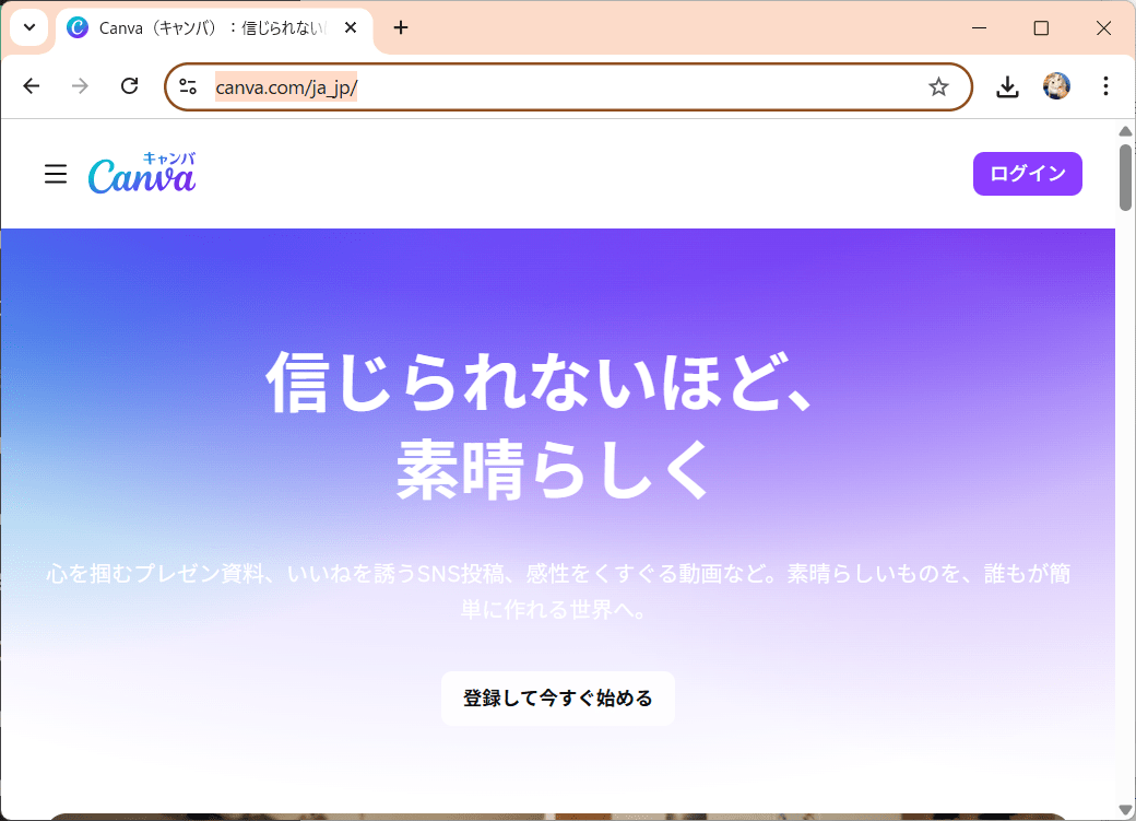 Canvaのサイトへアクセスし、Googleアカウントでログインする