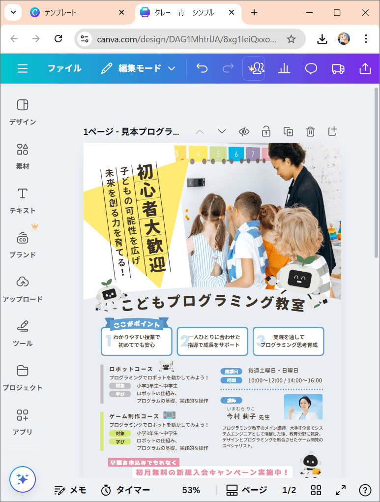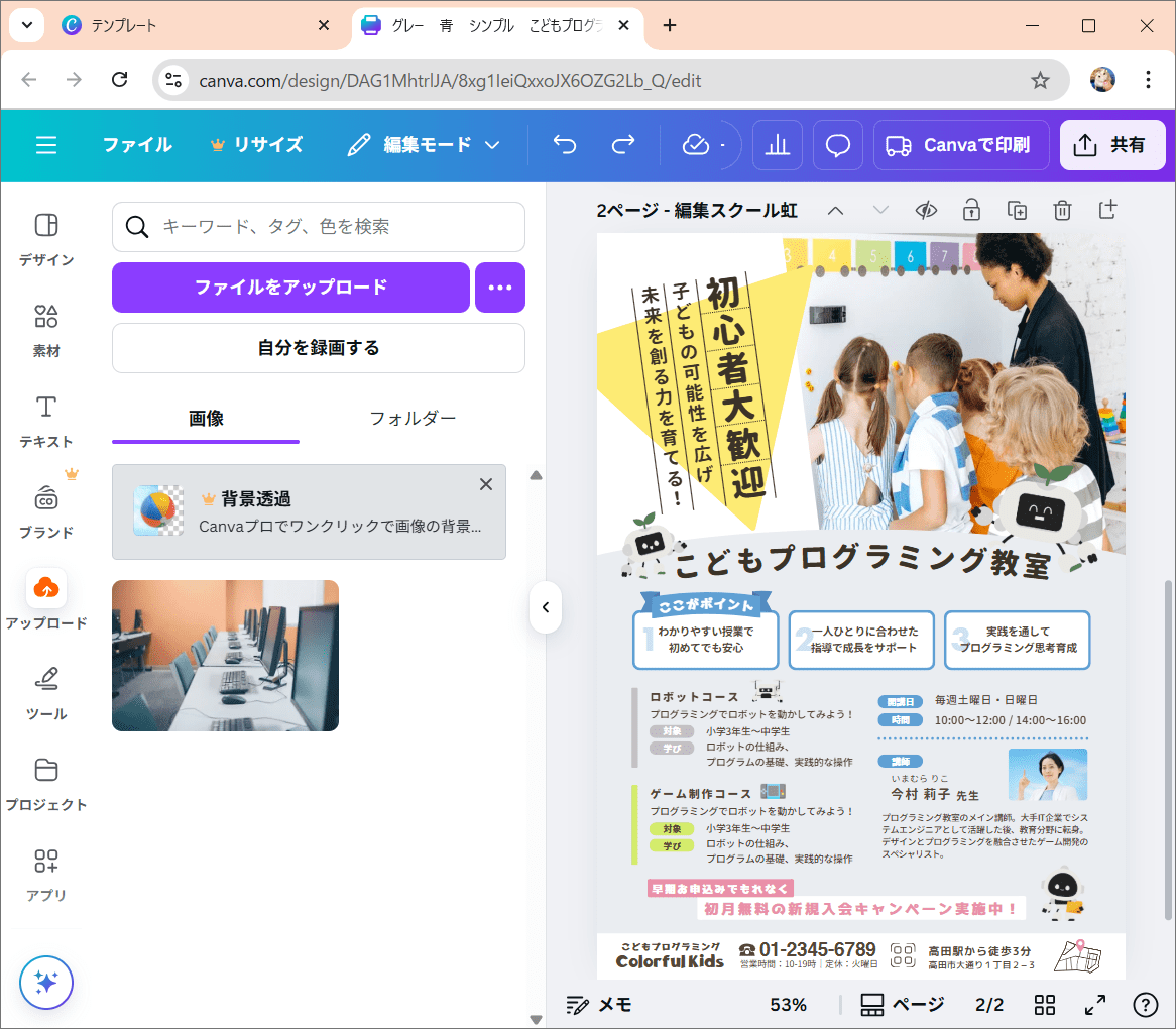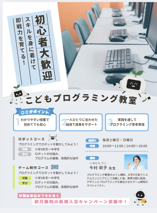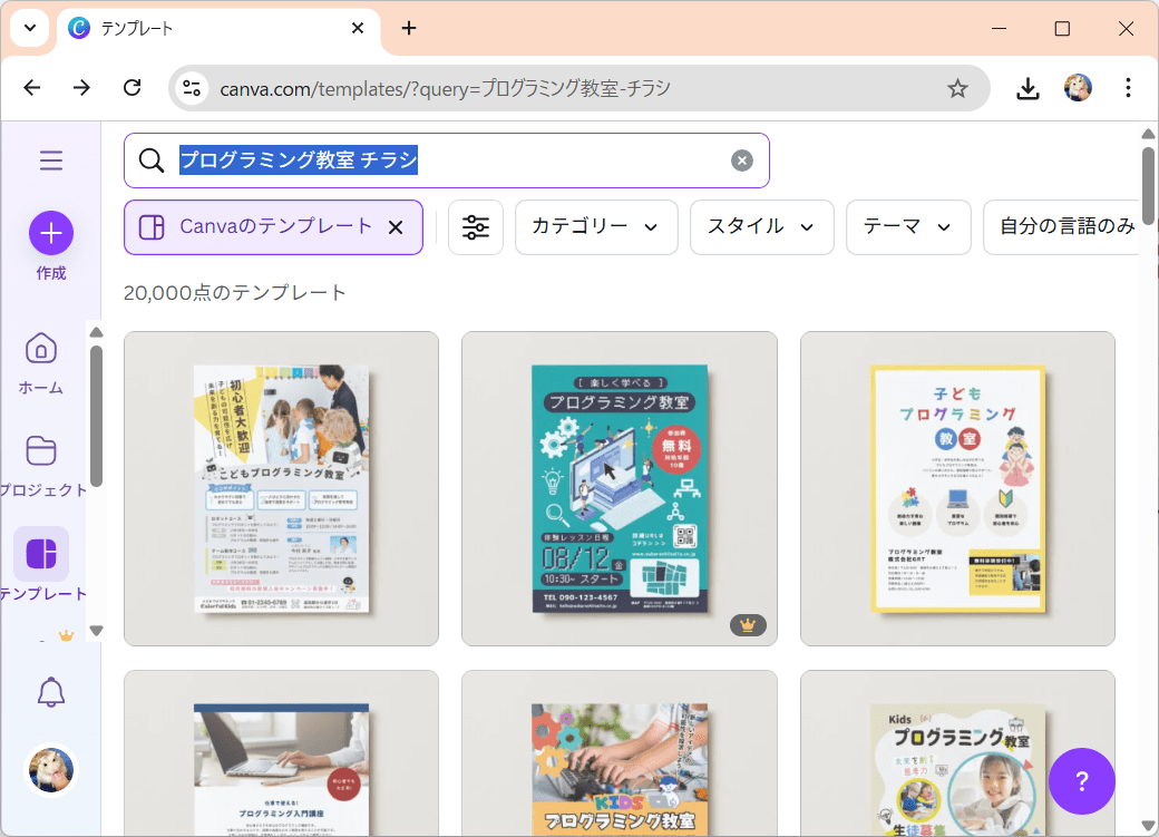 1.「プログラミング教室 チラシ」のキーワードで検索する。
