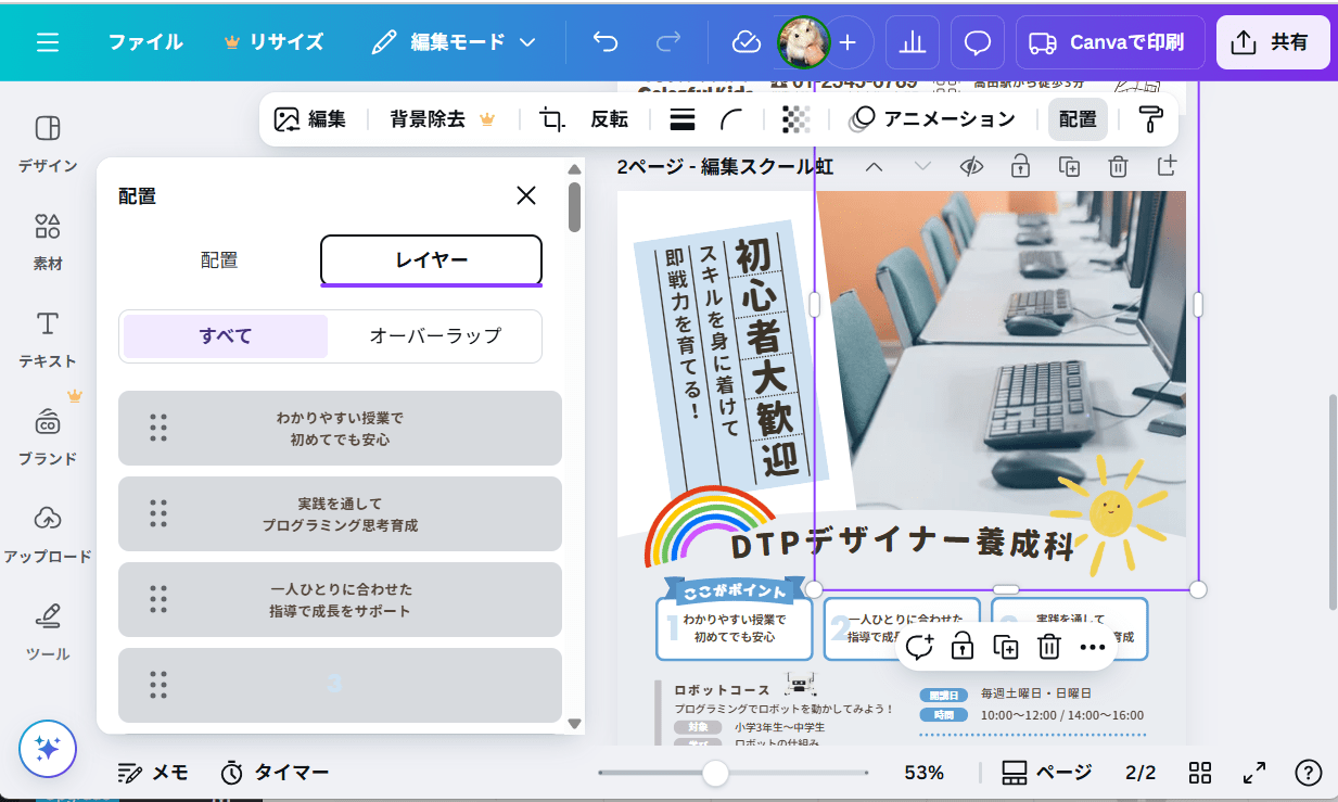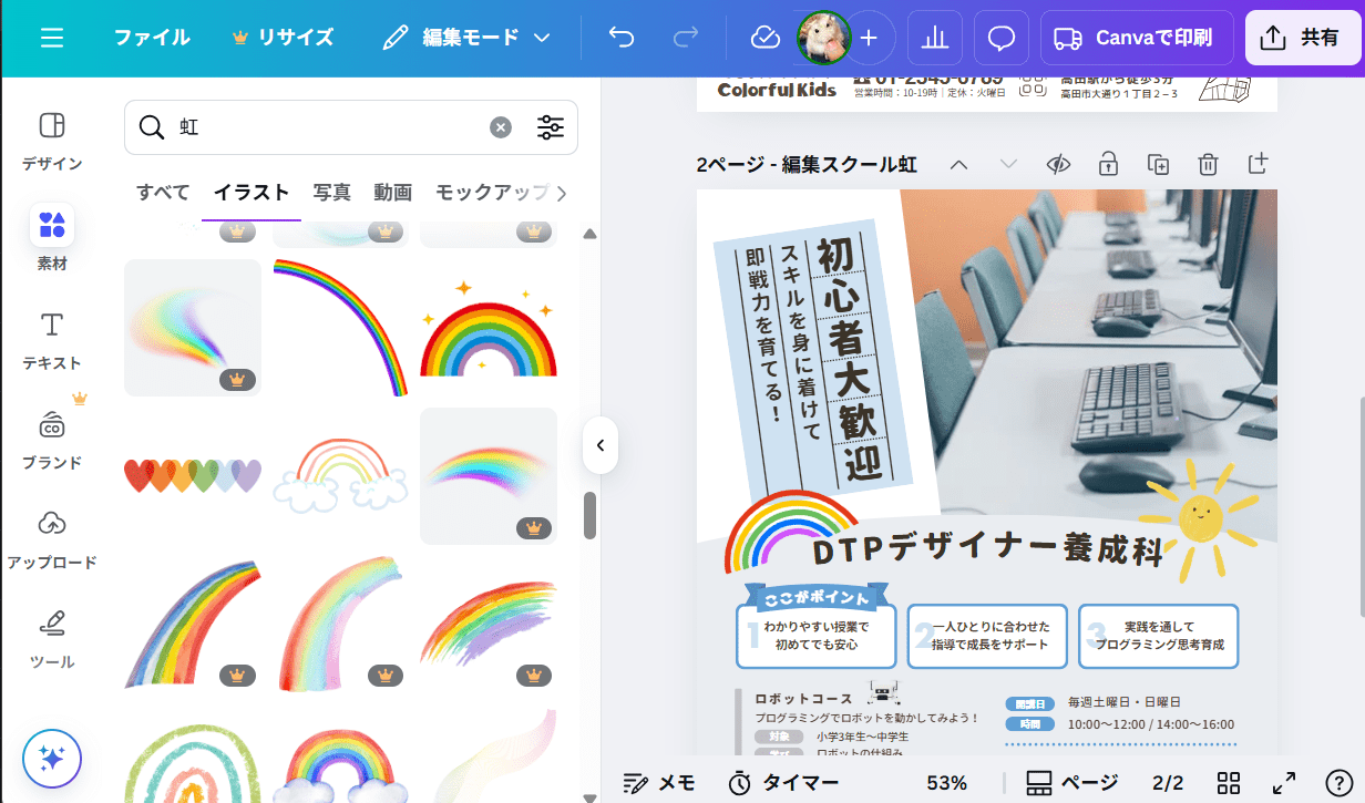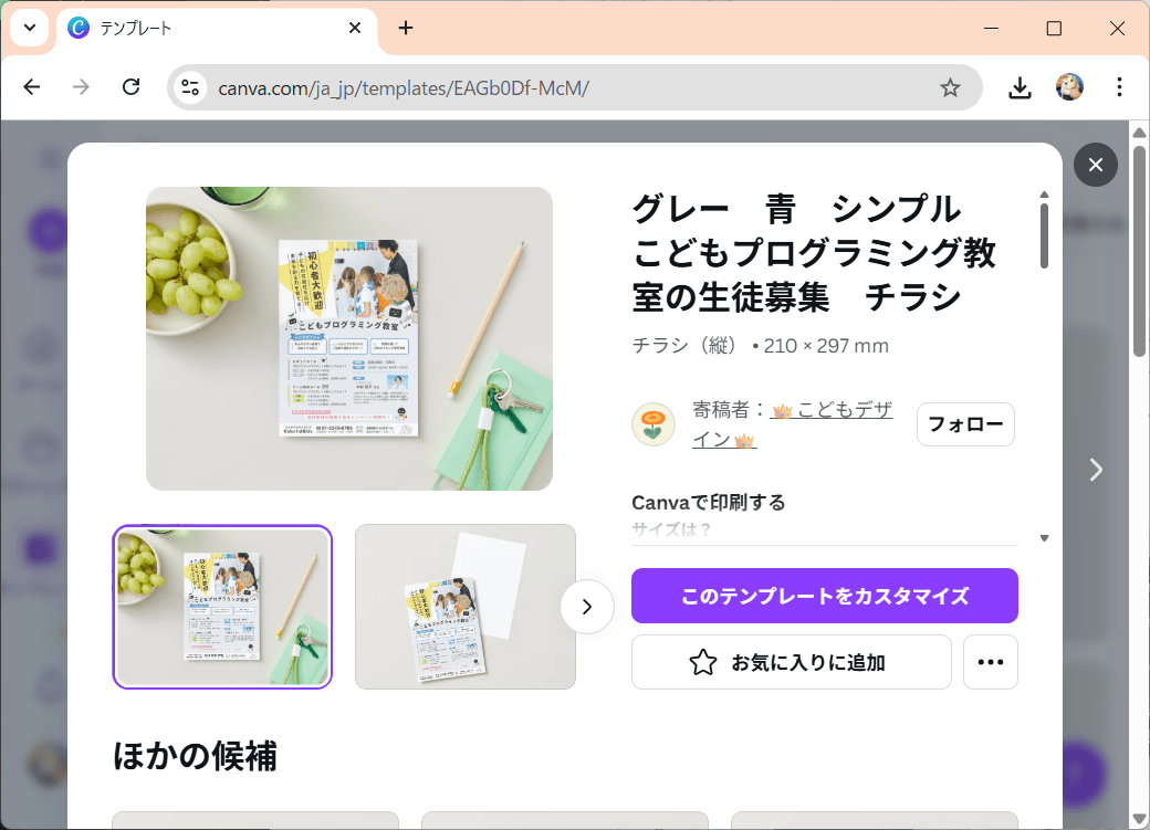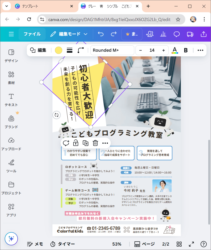 1.「プログラミング教室 チラシ」のキーワードで検索する。