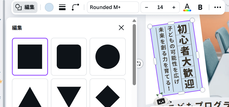※ 編集しづらい場合は、グループ化されているので解除して編集してください。