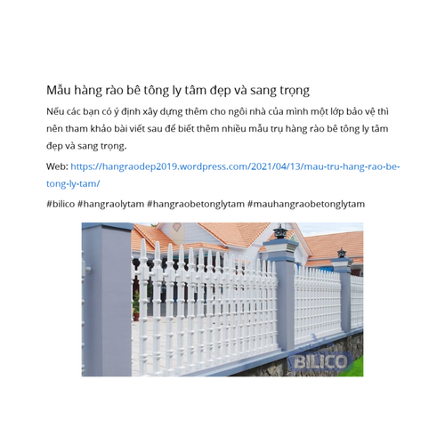 Công ty Cổ phần Xây dựng và Thiết bị Bilico chuyên phân phối lắp đặt những mẫu hàng rào ly tâm đẹp nhất tốt nhất.