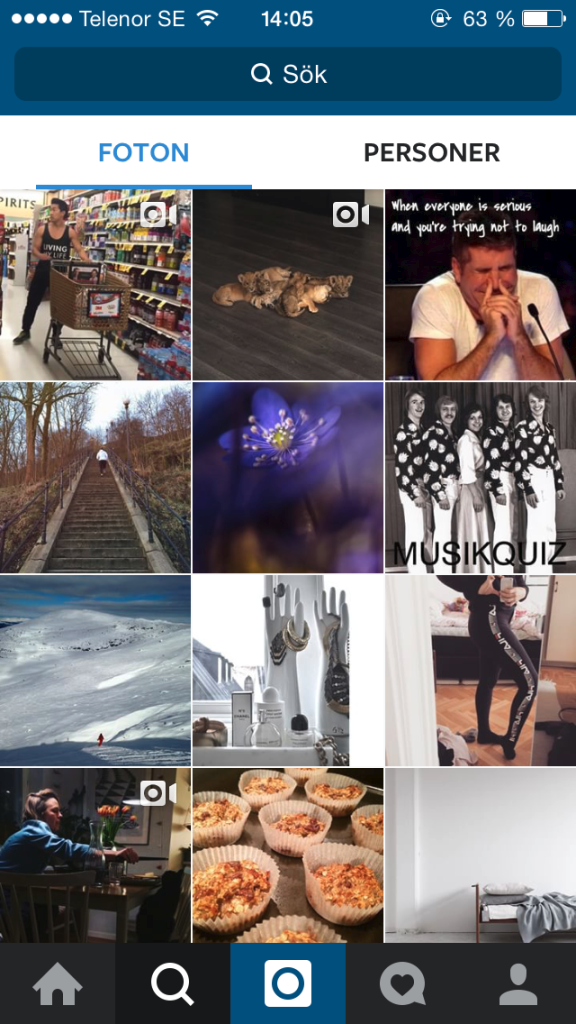 - Efter att man har lagat sitt instagram konto kan man börja ladda upp bilder eller videon