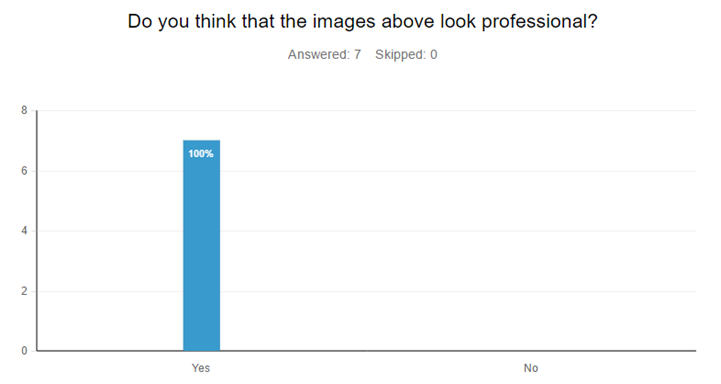 Question 1 asked my audience if the images I used for my contents page, front cover and article were professional. 100% of those who completed my questionnaire said that the photos were professional and, as a result of this, I will keep all of the photographs used in my magazine the same.