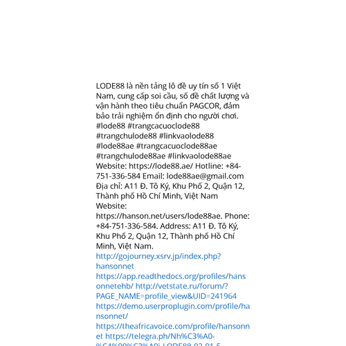 Website: https://hanson.net/users/lode88aehttps://hanson.net/users/lode88ae LODE88 là nền tảng lô đề uy tín số 1 Việt Nam, cung cấp soi cầu, số đề chất lượng và vận hành theo tiêu chuẩn PAGCOR, đảm bảo trải nghiệm ổn định cho người chơi. #lode88 #trangcacuoclode88 #trangchulode88 #