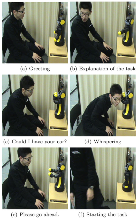 Effect of Robot’s Whispering Behavior on People’s Motivation