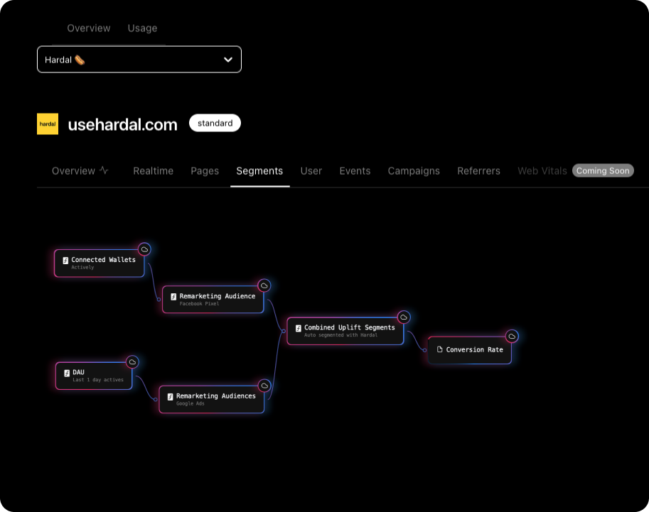 Hardal is a next-gen web and UX analytics platform that offers user-friendly, lightweight, and privacy-focused insights into web2 and web3 events tracking as cookieless for developers and marketers to optimize dApps or websites and understand the target audience on the blockchain without compromising privacy.