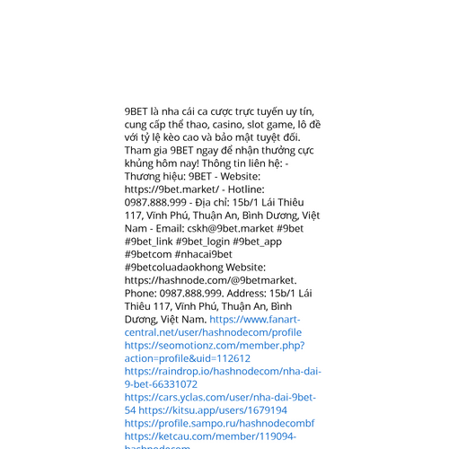 Website: https://hashnode.com/@9betmarket. 9BET là nha cái ca cược trực tuyến uy tín, cung cấp thể thao, casino, slot game, lô đề với tỷ lệ kèo cao và bảo mật tuyệt đối. Tham gia 9BET ngay để nhận thưởng cực khủng hôm nay! Thông tin liên hệ: - Thươn