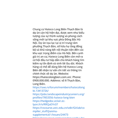 Website: https://hatecolongbien.com.vn/. Chung cư Hateco Long Biên Thạch Bàn là dự án căn hộ hiện đại, được xem như biểu tượng của sự thịnh vượng và phong cách sống mới tại khu vực phía Đông Bắc Hà Nội. Với lợi thế vị trí chiến lược, Hateco Long Biên