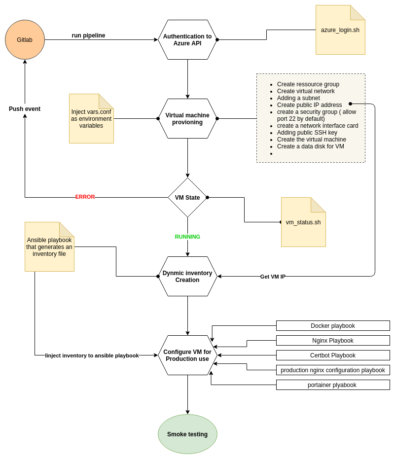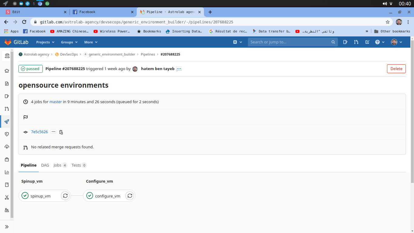 The Gitlab pipeline is splitted into two main stages "spinup_vm" and "configure_m".