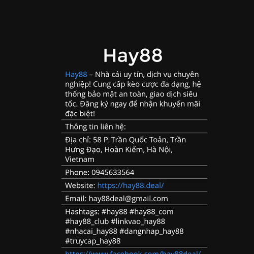 Hay88 – Cá cược đỉnh cao, thắng lớn mỗi ngày! 58 P. Trần Quốc Toản, Trần Hưng Đạo, Hoàn Kiếm, Hà Nội, Vietnam 0945633564