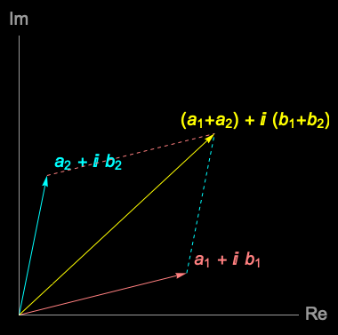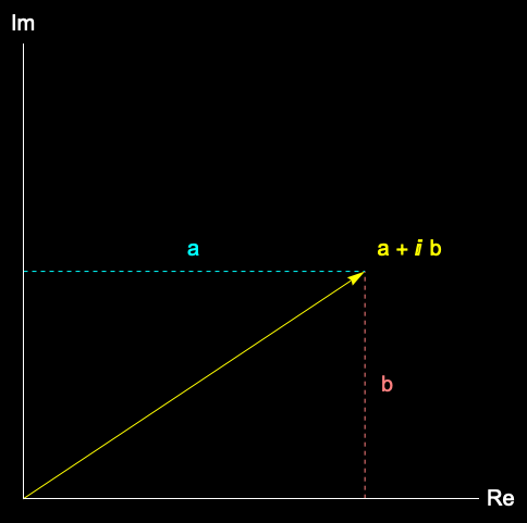 複素数は、横軸に実数、縦軸に虚数をとった複素平面上のベクトルとして表される。