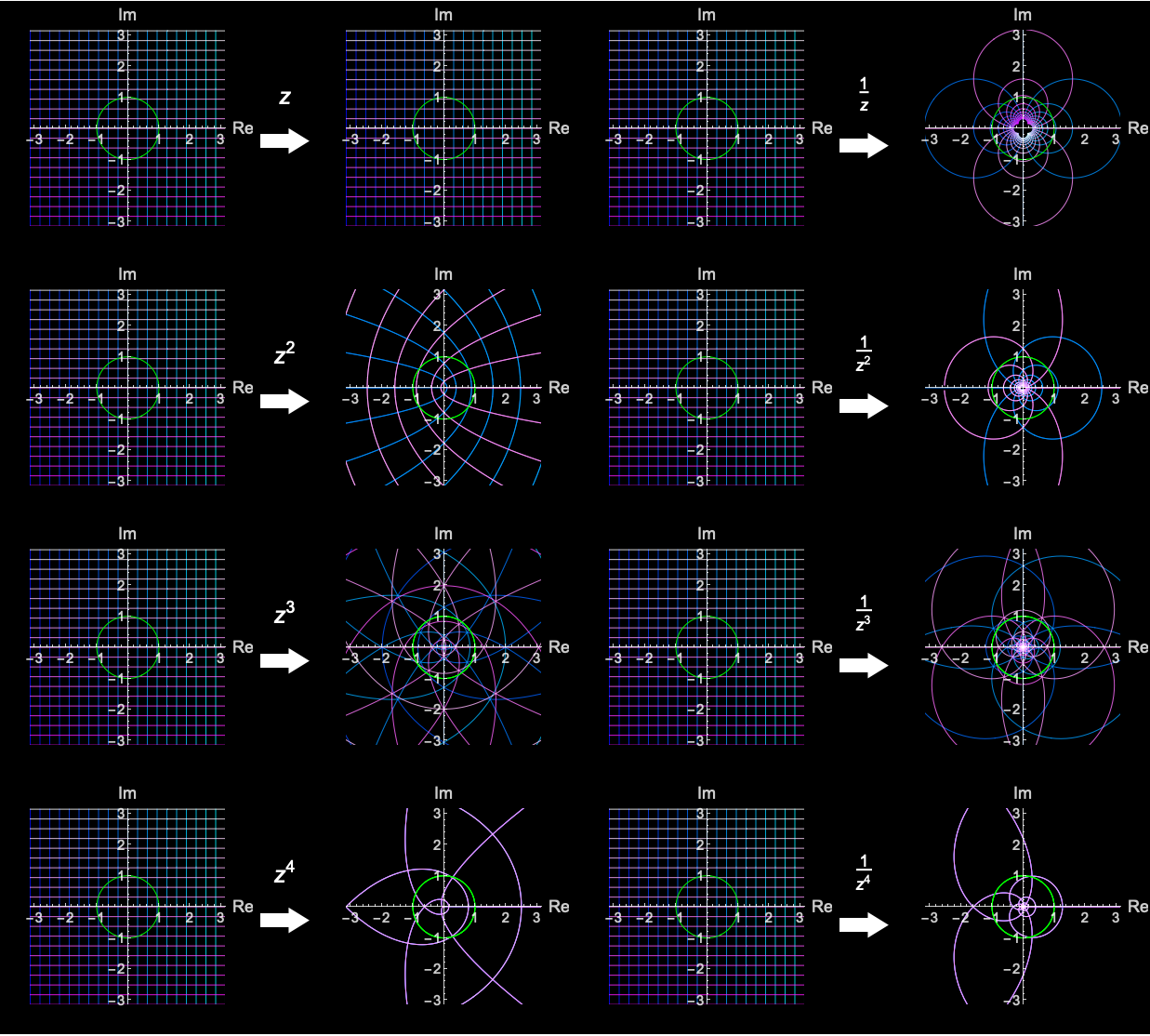 実数関数と同じように扱えるふつうの複素関数は正則(まさのり)性 という条件を満たす。 正則な複素関数は、微小正方形を必ず微小正方形に移す。 これは実関数の微分可能の概念の拡張である。
