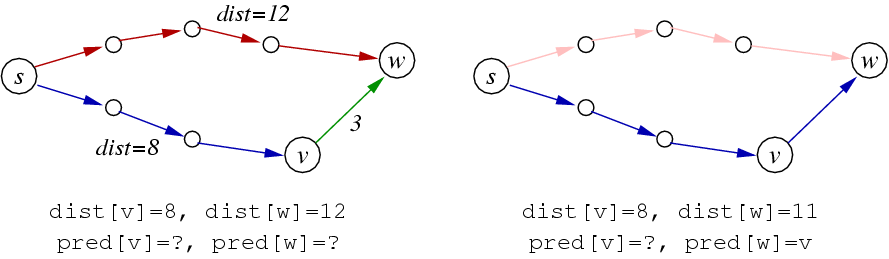 Edge relaxation occurs whilst we are exploring a graph for the shortest path. This is because dist[] and pred[] show the shortest path so far.