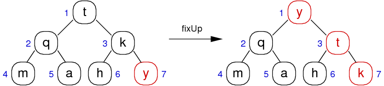 (but this might violate heap property; new value larger than parent) - Reorganise vales along path to root to restore heap property