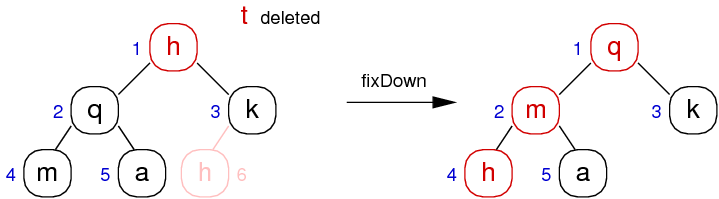 - swap() is O(1), fixDown() is O(logN), so overall O(NlogN)