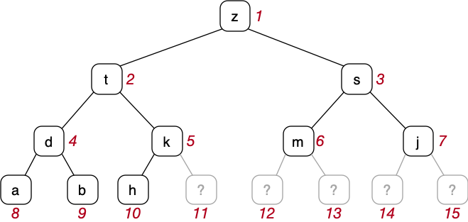 - Since heaps are dense trees, depth = floor(log2N)+1