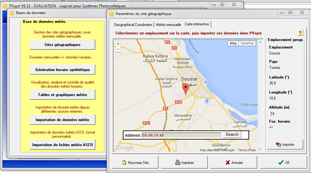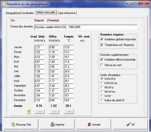 PVsyst permet d’importer des données météo d'une dizaine de sources différentes ainsi que des données personnelles.
