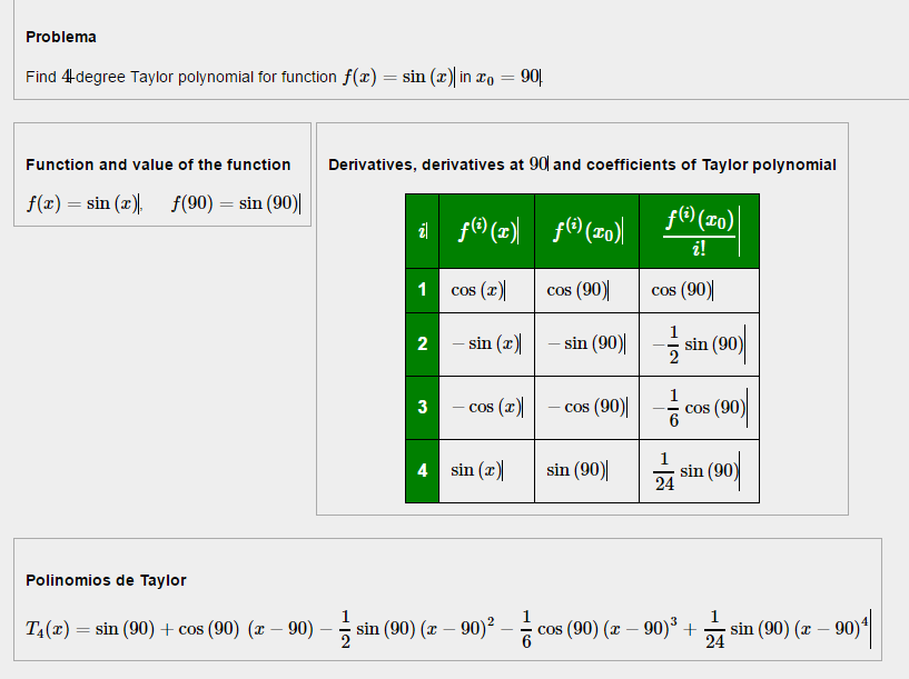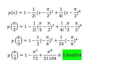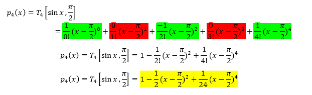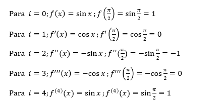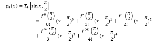 Calcular el polinomio de grado 4 que se ajusta a la función seno en el punto pi/2.