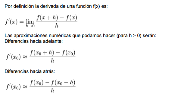 Es una técnica de análisis numérico para calcular una aproximación a la derivada de una función en un punto utilizando los valores y propiedades de la misma.