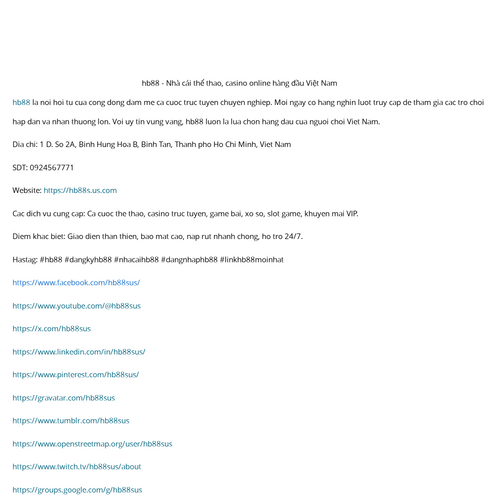 hb88 la noi hoi tu cua cong dong dam me ca cuoc truc tuyen chuyen nghiep. Moi ngay co hang nghin luot truy cap de tham gia cac tro choi hap dan va nhan thuong lon. Voi uy tin vung vang, hb88 luon la lua chon hang dau cua nguoi choi Viet Nam. Dia chi: