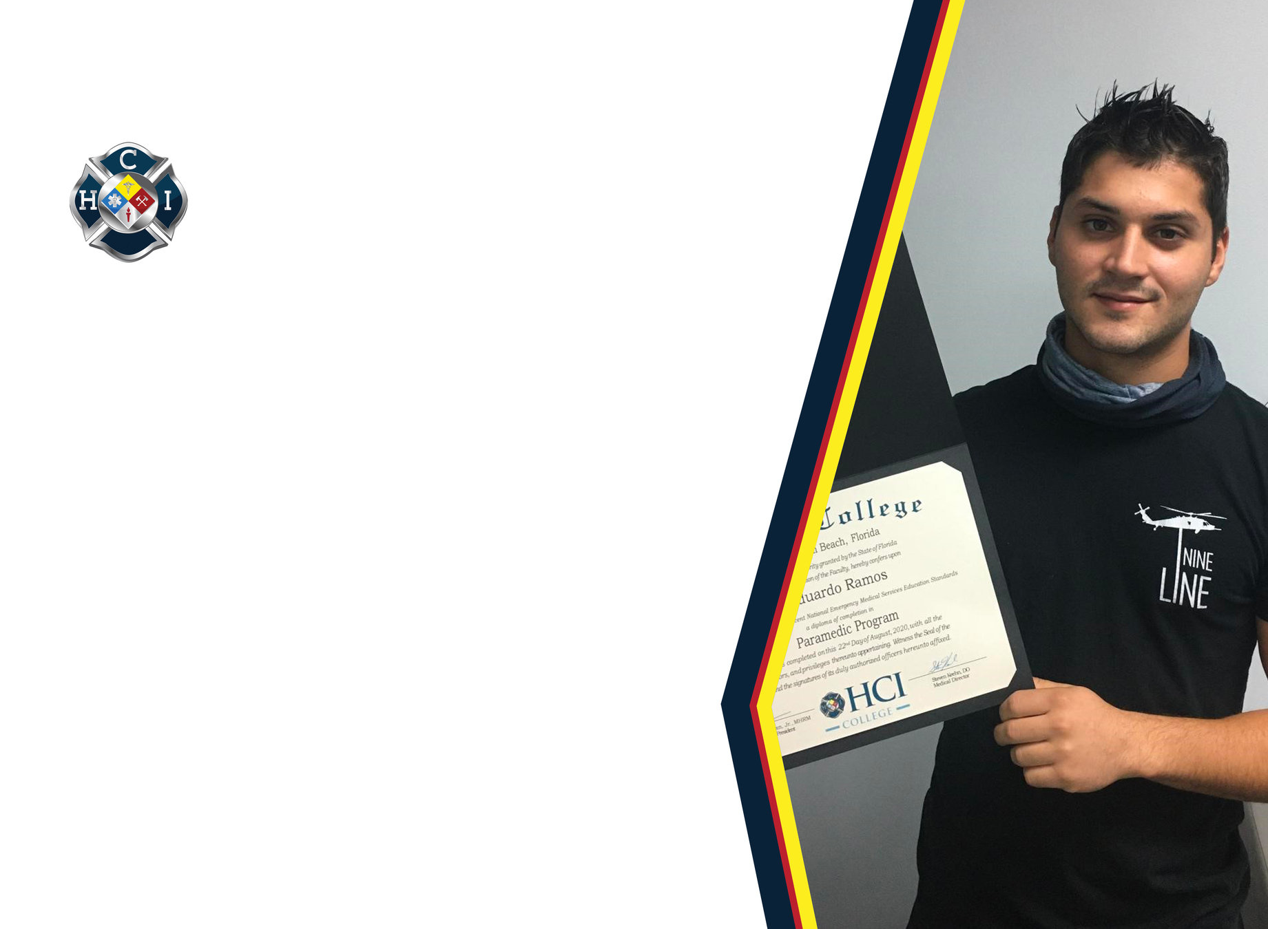 "Coming to HCI has helped me because it allowed me to fulfill my heart's desire to help people so I can go home everyday feeling fulfilled! I applied the emergency skills I learned in class to help a civilian who was hit by a car. I completed my trauma assessment and held him in a C spine position to ensure he didn't undergo further injury and treated for shock by keeping him warm and dry until rescue arrived. I then verbally reported the patient care report to Dr. Steven Kheen who was also my Medical Director at HCI College in West Palm Beach."