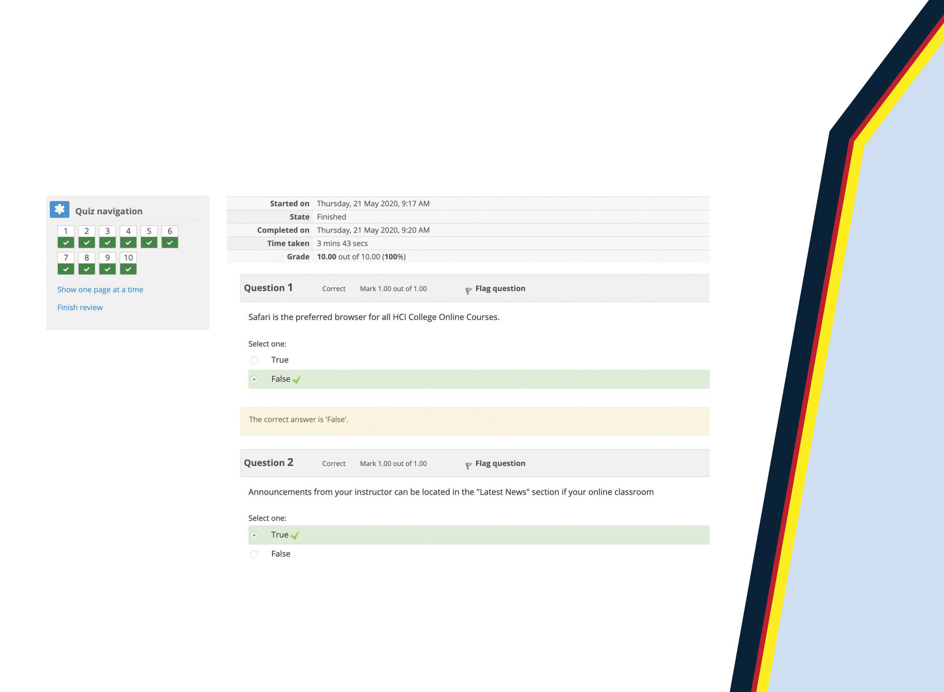 Step 4: How to take a quiz (con't)