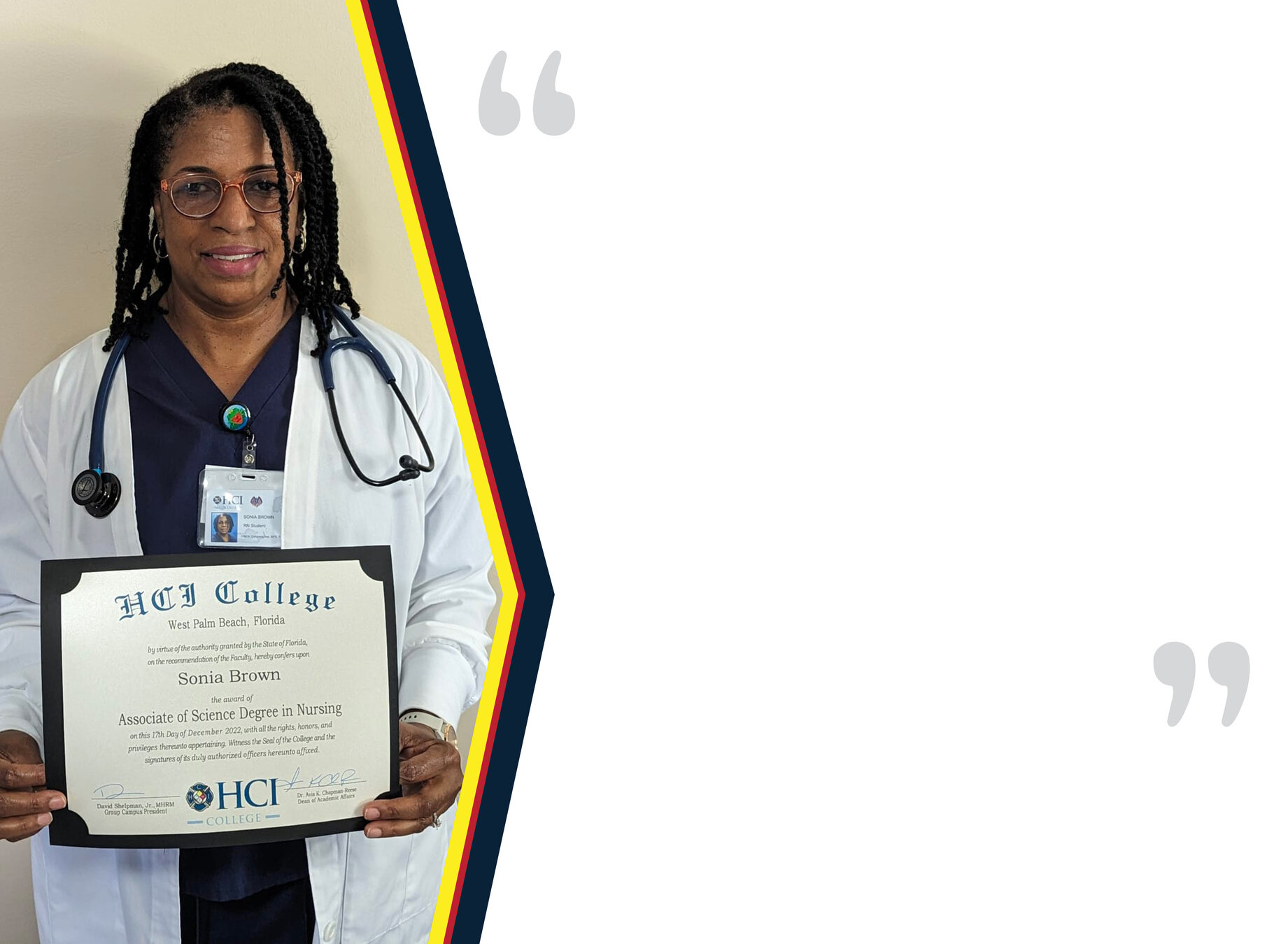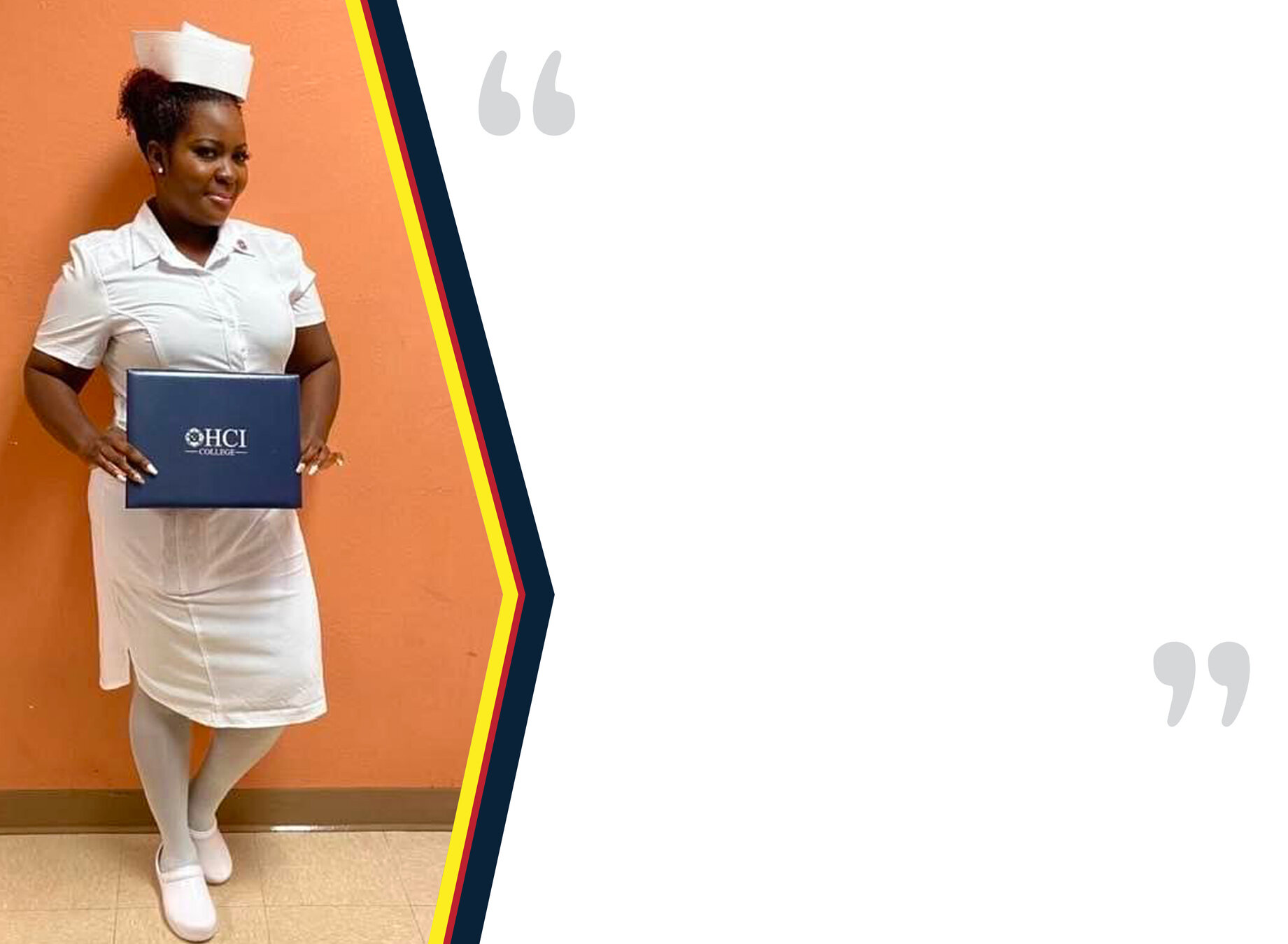 "Anything worth having is worth fighting for”‐Susan Elizabeth Phillips. Having my Nursing degree was worth the fight. The faculty and staff of HCI College stood behind me every step of the way to ensure I would win. Being an adult learner and single parent, I was faced with multiple obstacles but I never gave up because of the encouraging words of Miss Lorna, Professor Allison and Professor Timmie to name a few. I would recommend this school to anyone who is serious about pursing their dream of becoming a registered nurse as like me you too will have an army of dedicated individuals to help you succeed.
