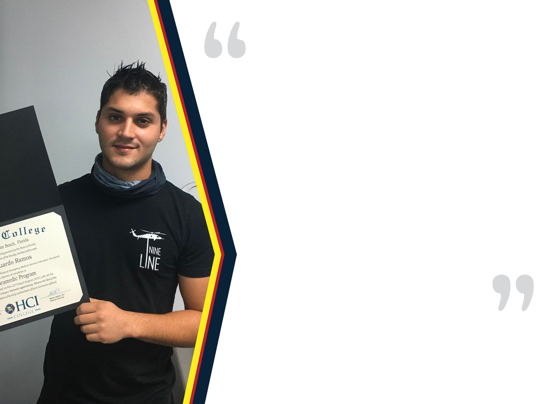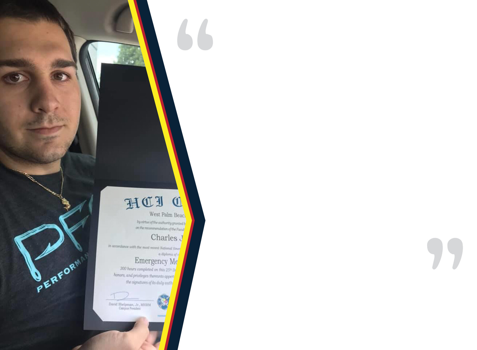 As a career-driven person with the utmost passion for EMS, I knew that early on I could align my career commitments by becoming a Paramedic. By that, HCI has supported these goals without barriers. The Paramedic program further induced these desires where I was able to apply myself in addition to lived experience while incorporating the full exposure that the program offers in ways unlike any before. With the support of their excellent staff, the EMS Director and my Lead Instructor Bruce Evans, I was able to embody this in full achievement.
