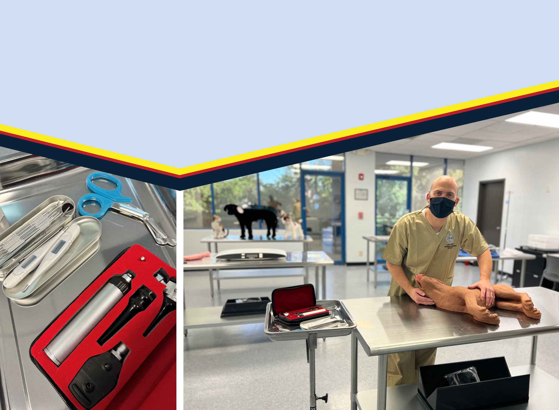 Focuses on: Animal anatomy and physiology, veterinary terminology, and animal care activities. Through hands-on lab experiences, students will learn how to keep medical and image records, offer client education, assist with nursing duties, prepare for surgeries, and assist in a routine exam.