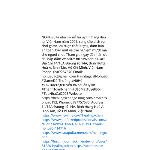 Website: https://healingxchange.ning.com/profile/Nohu90192. NOHU90 là nha cái nổ hũ uy tín hàng đầu tại Việt Nam năm 2025, cung cấp dịch vụ chơi game, ca cược chất lượng, đảm bảo an toàn, bảo mật và trải nghiệm mượt mà cho người chơi. Tham gia ngay đ