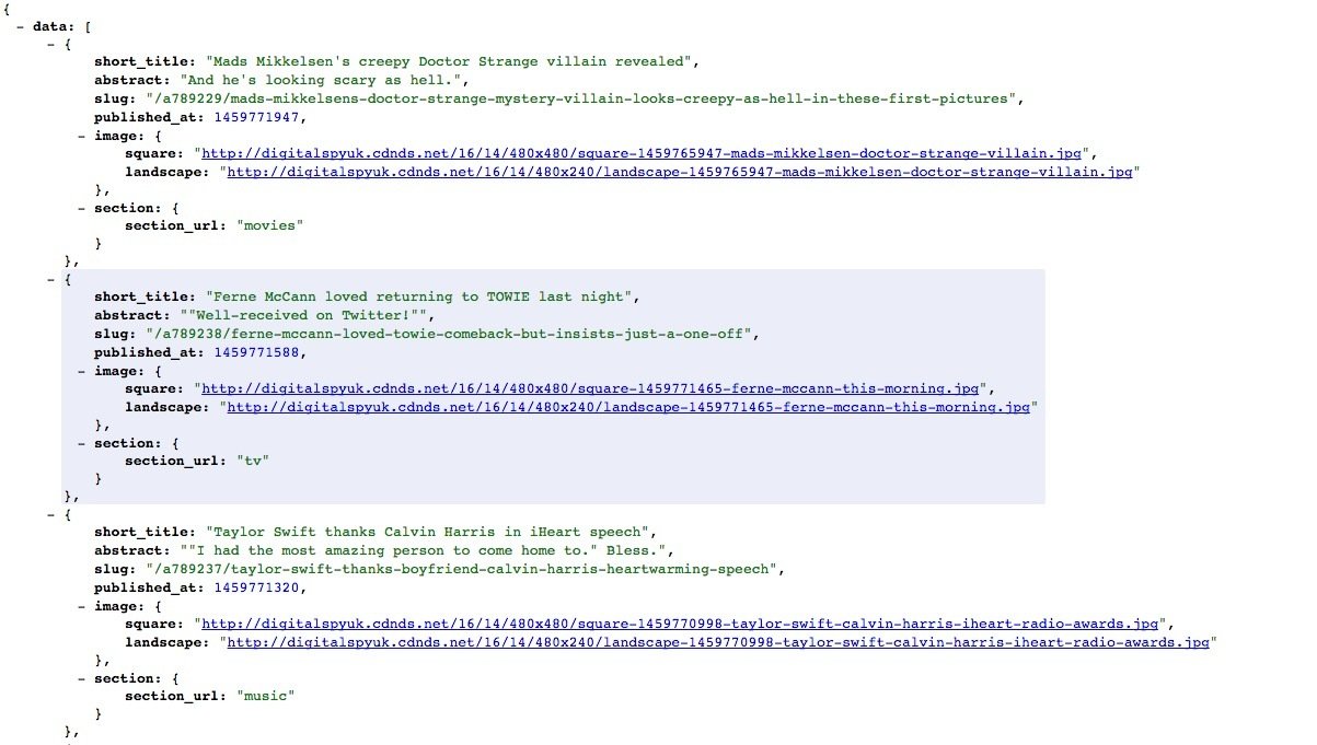 - GET api.digitalspy.com/v1/content/latest/list?limit=10