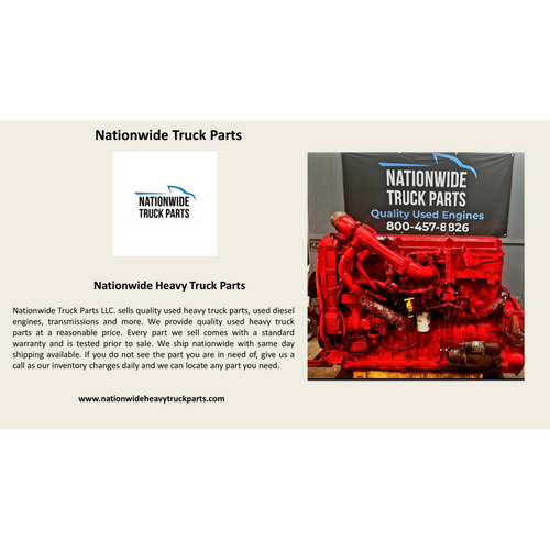 Nationwide Truck Parts LLC. sells quality used heavy truck parts, used diesel engines, transmissions and more. We provide quality used heavy truck parts at a reasonable price.