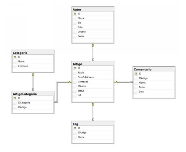 Artigo => ID, Titulo, DataPublicacao, Conteudo, IDAutor, Status, URL