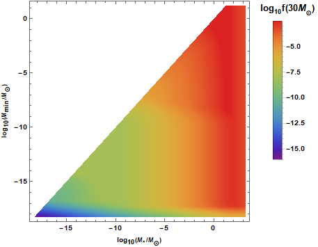 \(f(M\sim 30\ M_\odot) \sim 10^{-3} \ \to \) merger rate for LIGO events