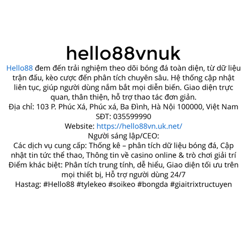 Hello88 đem đến trải nghiệm theo dõi bóng đá toàn diện, từ dữ liệu trận đấu, kèo cược đến phân tích chuyên sâu. Hệ thống cập nhật liên tục, giúp người dùng nắm bắt mọi diễn biến. Giao diện trực quan, thân thiện, hỗ trợ thao tác đơn giản. Địa chỉ: 103