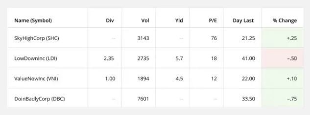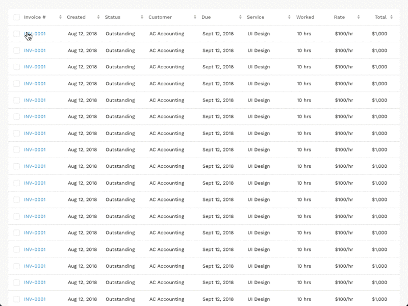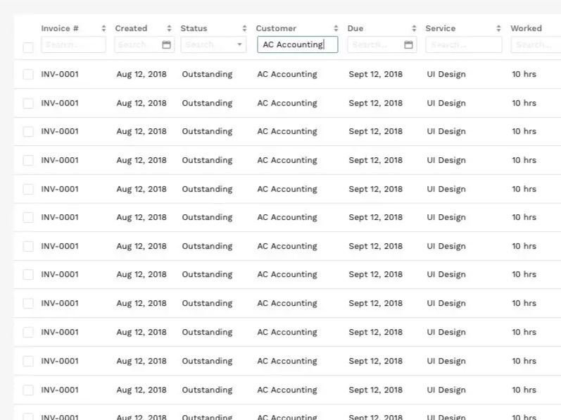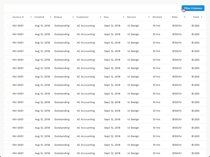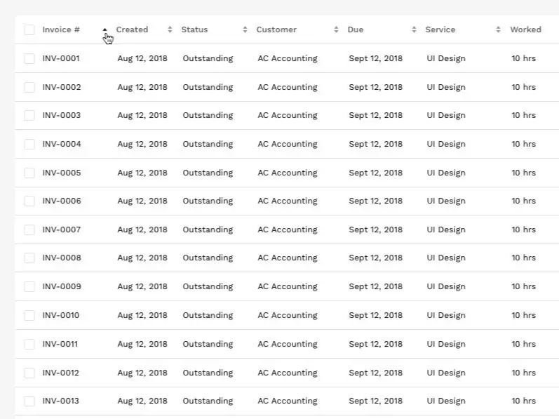 Column sorting allows users to organize rows alphabetically and numerically.