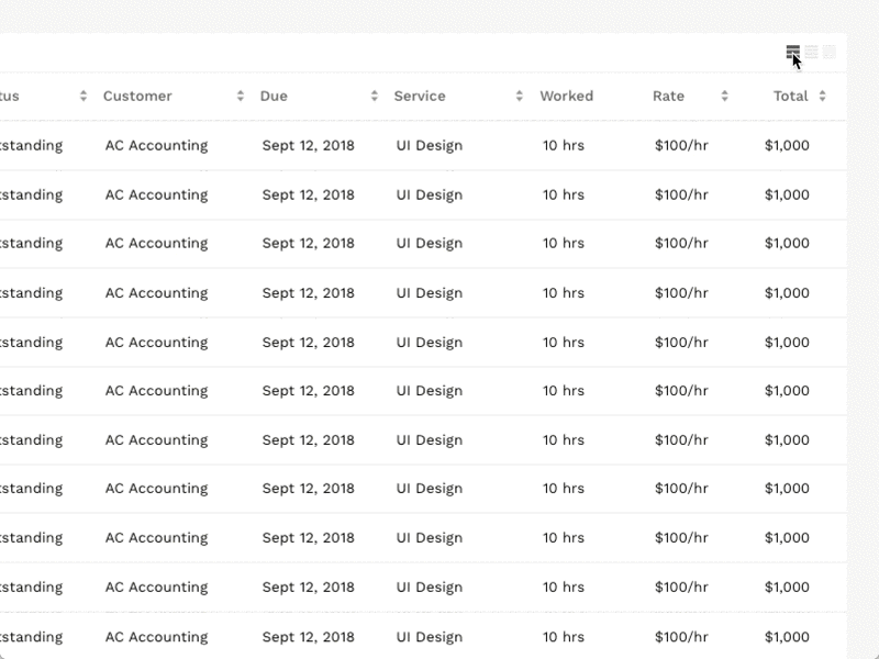 Smaller row height enables the user to view more data without the need for scrolling.