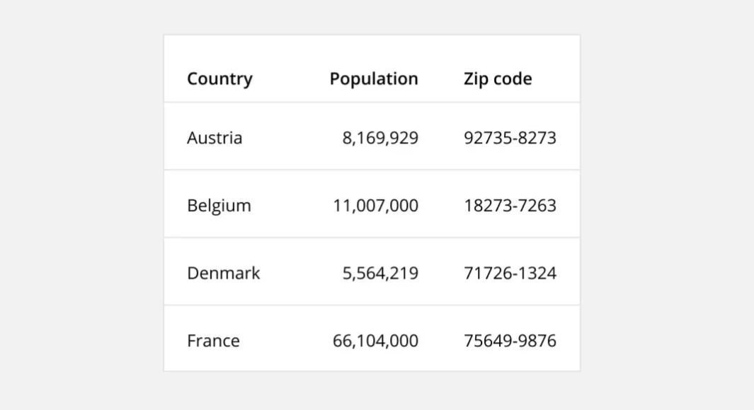 When presenting large datasets. Place identifier data in the first column.