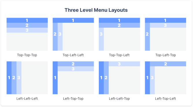 Navigation menus are lists of content categories or features, typically presented as a set of links or icons grouped together with visual styling distinct from the rest of the design.
