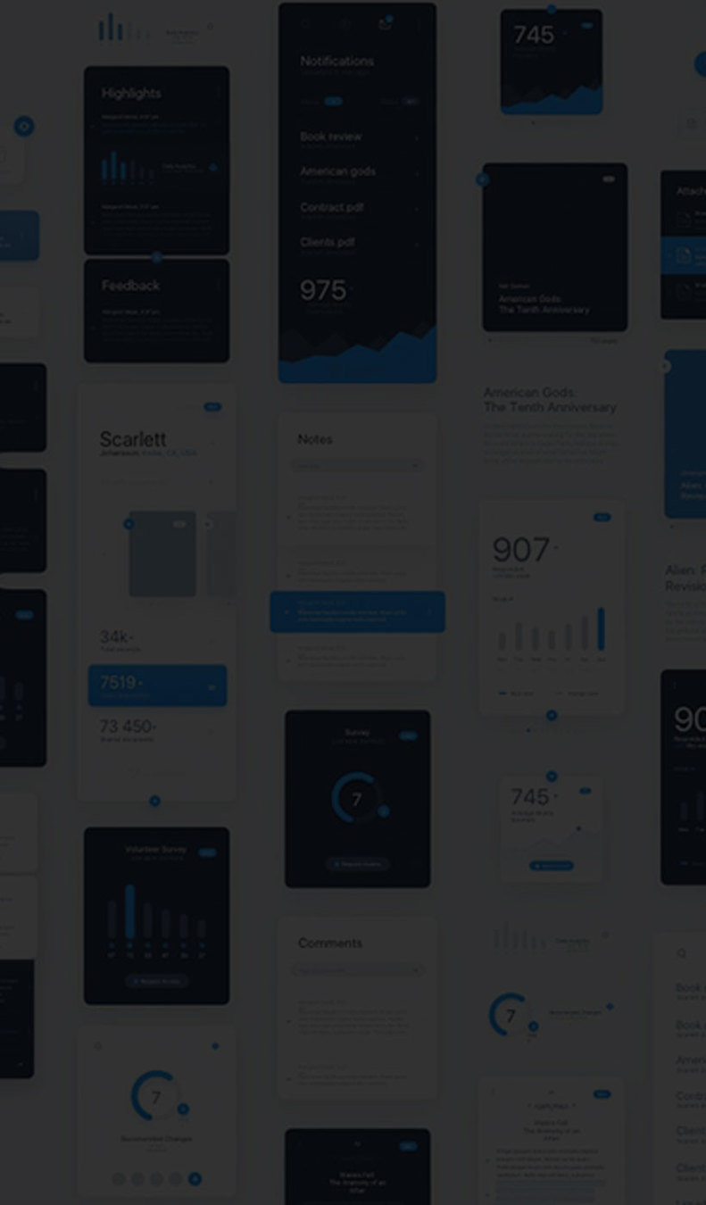 UI kits typically include those components that convey meaning and provide functionality to users – think buttons, widgets, checkboxes, progress bars, and navigation buttons.