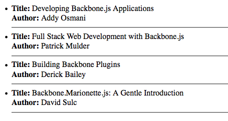 { title: 'Developing Backbone.js Applications', author: 'Addy Osmani' },