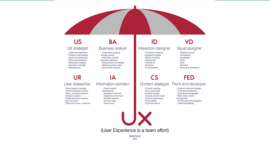 UX Umbrella (guarda-chuva de UX) é um termo a que se refere todas as competências que envolvem uma área de experiência de usuário.