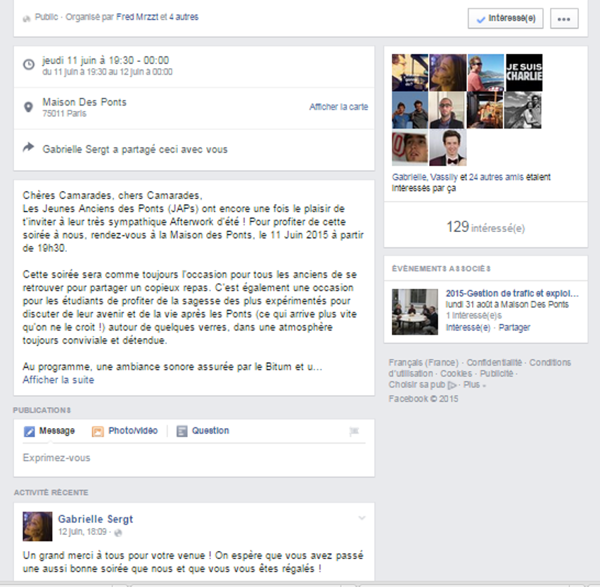 - Pratique pour discuter une fois l'événement créé.