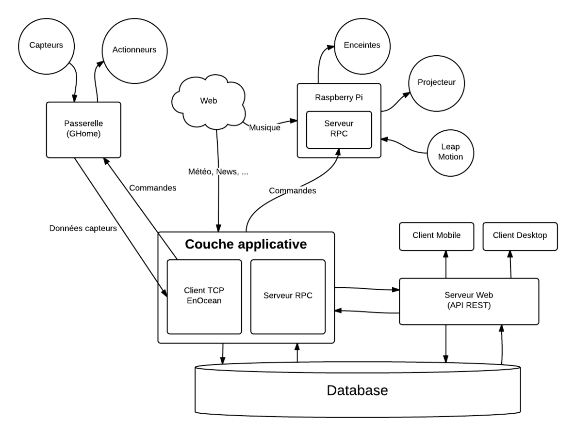Faible couplage entre les différents blocs (serveur EnOcean, serveur web et serveur multimédia)