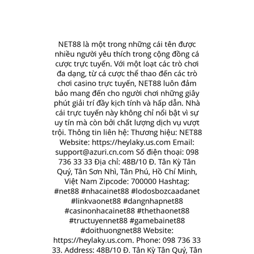 Website: https://heylaky.us.com. NET88 là một trong những cái tên được nhiều người yêu thích trong cộng đồng cá cược trực tuyến. Với một loạt các trò chơi đa dạng, từ cá cược thể thao đến các trò chơi casino trực tuyến, NET88 luôn đảm bảo mang đến ch
