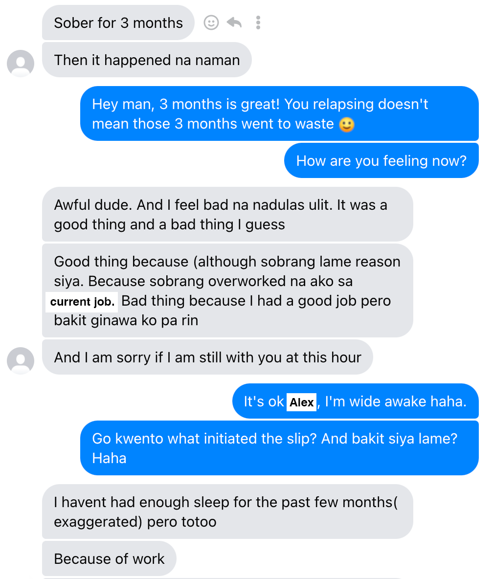 Tired and lacked sleep because they're overworked, and they feel bad for using again.