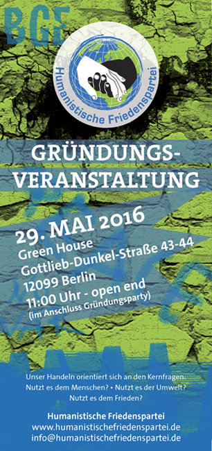 Wir sind ein Teil der globalen Friedens- und Informationsbewegung und haben das Ziel, eine politische Kraft zu werden. Alle sind willkommen. Gründungstreffen der Humanistischen Friedenspartei 29.05.2016 in Berlin