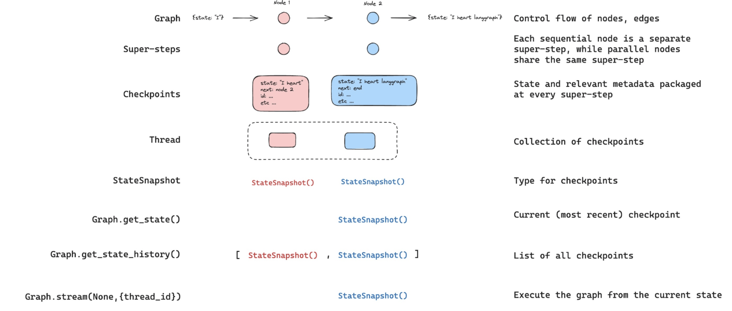 State: a shared data structure that holds the current snapshot of your application's data, accessible to all nodes in the graph