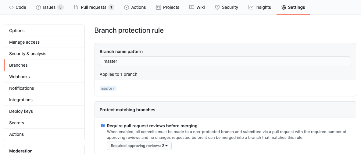 최소 2명(팀마다 정하기 나름)의 리뷰를 받아야 master에 merge 가능