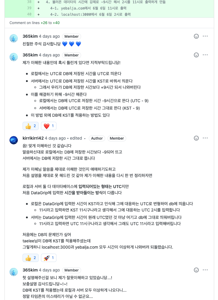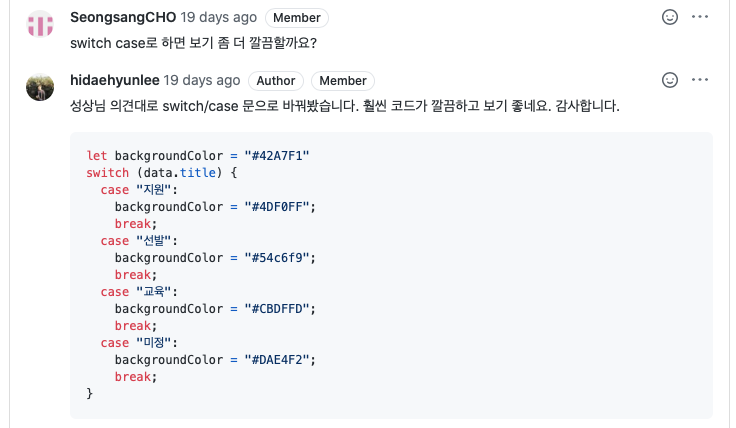 ✅ 꼼꼼한 코드리뷰를 받을 수 있어서 내 코드가 개선됨